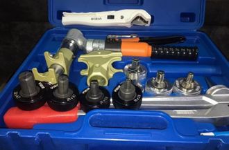Качественный гидравлический комплект для работы с аксиальными фитингами и трубами из сшитого полиэтилена. Облегчает работу с большими диаметрами труб. Подходит для работы с трубами PEX REHAU типа flex, pink. Для работы с трубой типа stabil необходимо доукомплектовать набор соответствующими расширительными насадками.